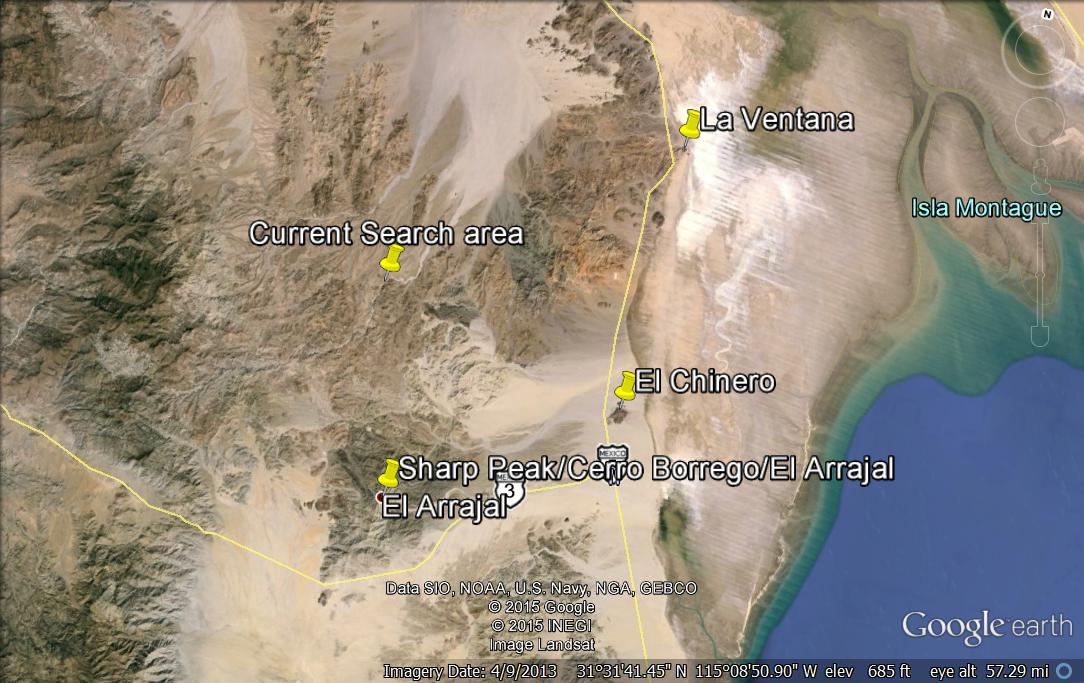 base of Cerro Borrego, so that I think Arroyo Arrajal was on or parallel to his return route back from Arroyo Grande?