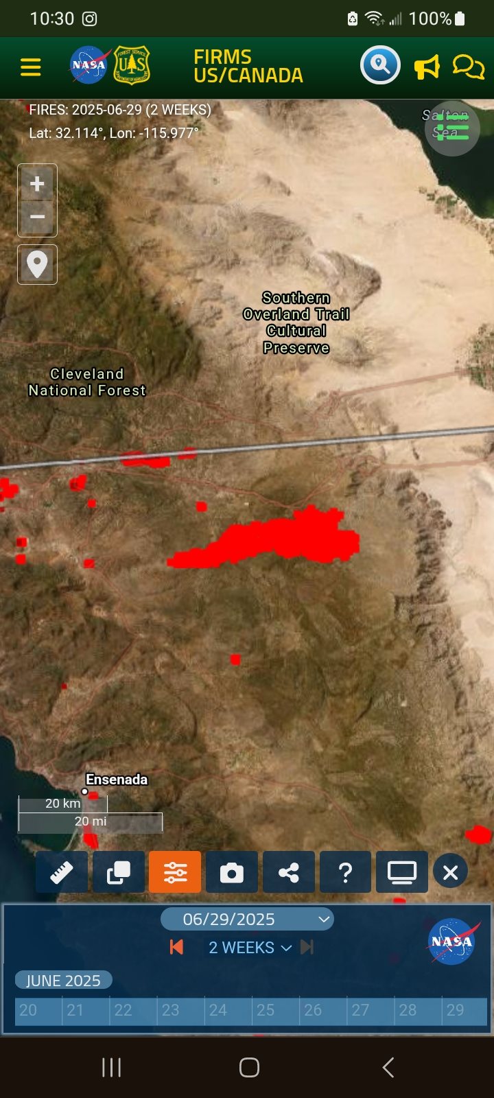 tonight. El Topo is safe for now, 14 km south of the fire.