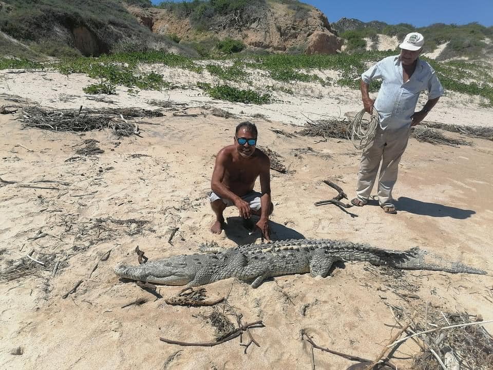 report the occasional sightings of a crocodile ("gila monster from the sea"; assumed to be C. acutus) as far north as Punta Sargento