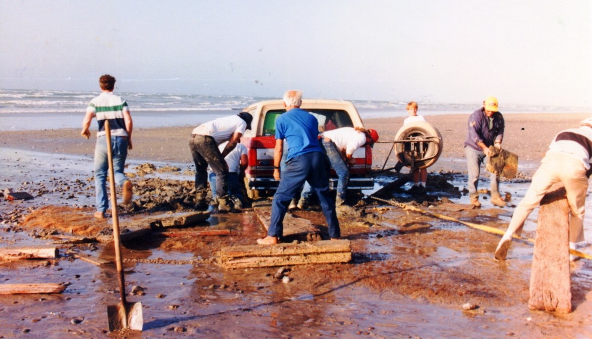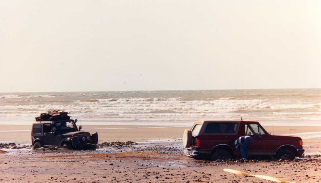 Around 1994/5 we went to Malarrimo beach for a camping trip with a few other trucks. We knew not to drive below the high tine line as we had heard