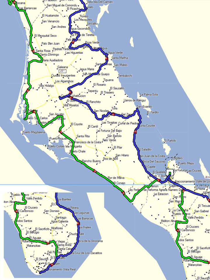 to get the pdf of my map under 250 KB I'll attach it to another post. Anyway, I am wondering about our planned route into and out of Mulege. Is the