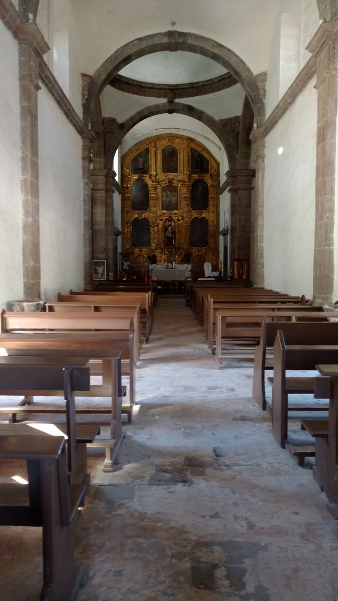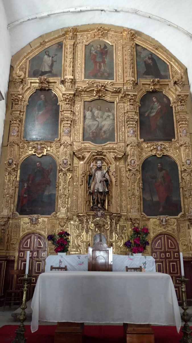 The gold retablo (altarpiece) in front was transported from mainland Mexico across the gulf, and carried in pieces by burros up the trail. Quite a