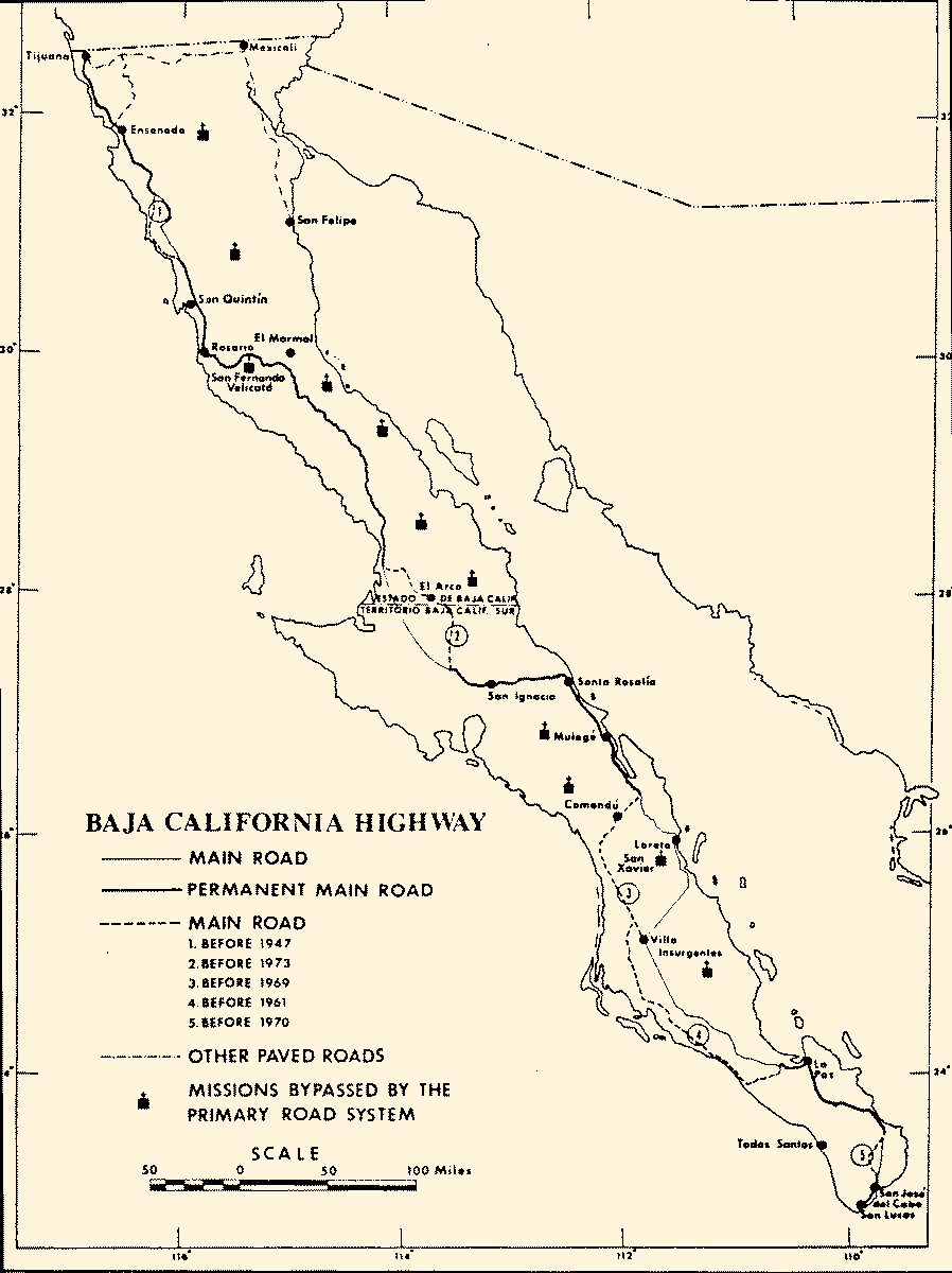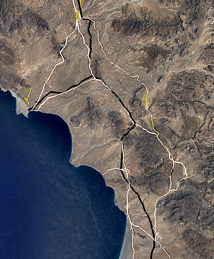 The old road cut across Baja through Comondu then south. The new highway goes south to Loreto and on to Ligui before crossing west to Insurgentes.