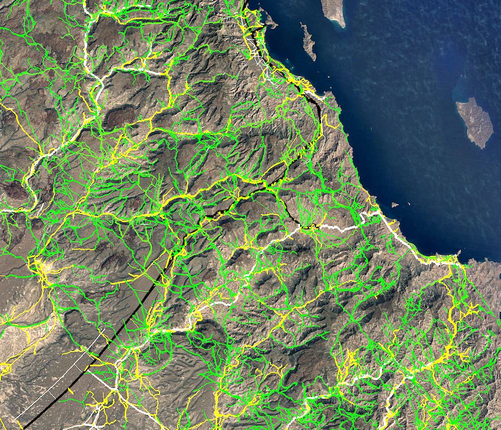 Beginning in 1961, attempts were made to bulldoze a trail from Rancho Santa Ines, past the Santa Maria mission to Bahia Gonzaga on the Sea of Cortez.