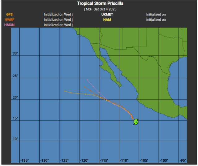 Reminding us that hurricane season isn't over, EP99 just became named storm Priscilla, currently a tropical storm off the Southwest coast of Mexico.