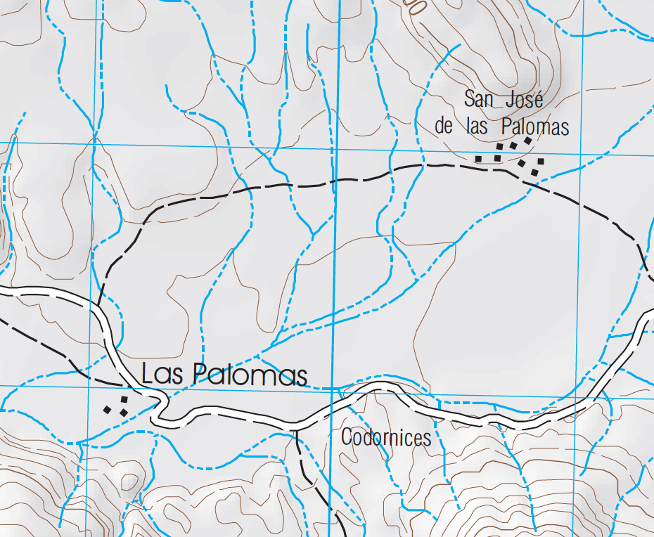 You can make out the route from the water to there. Easiest if you work back from Palomas.