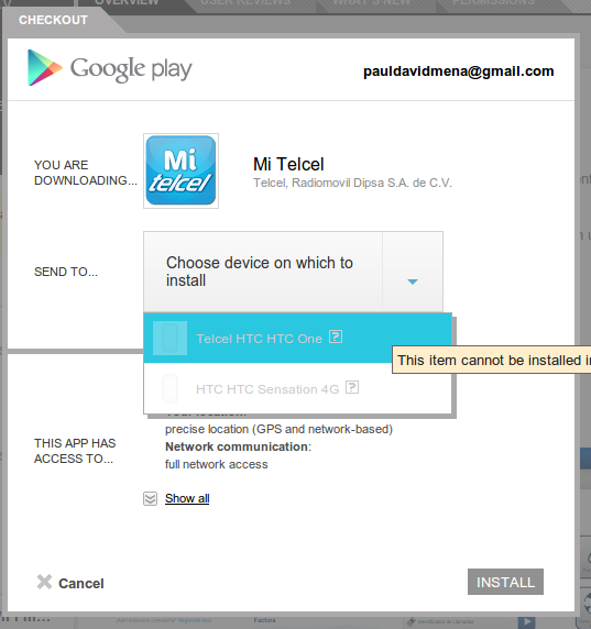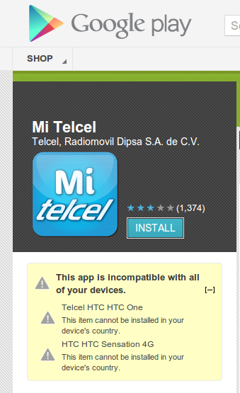 connection to that VPN from my phone, but still couldn't install the MiTelcel app. I continue to get the error "This item cannot be installed in your