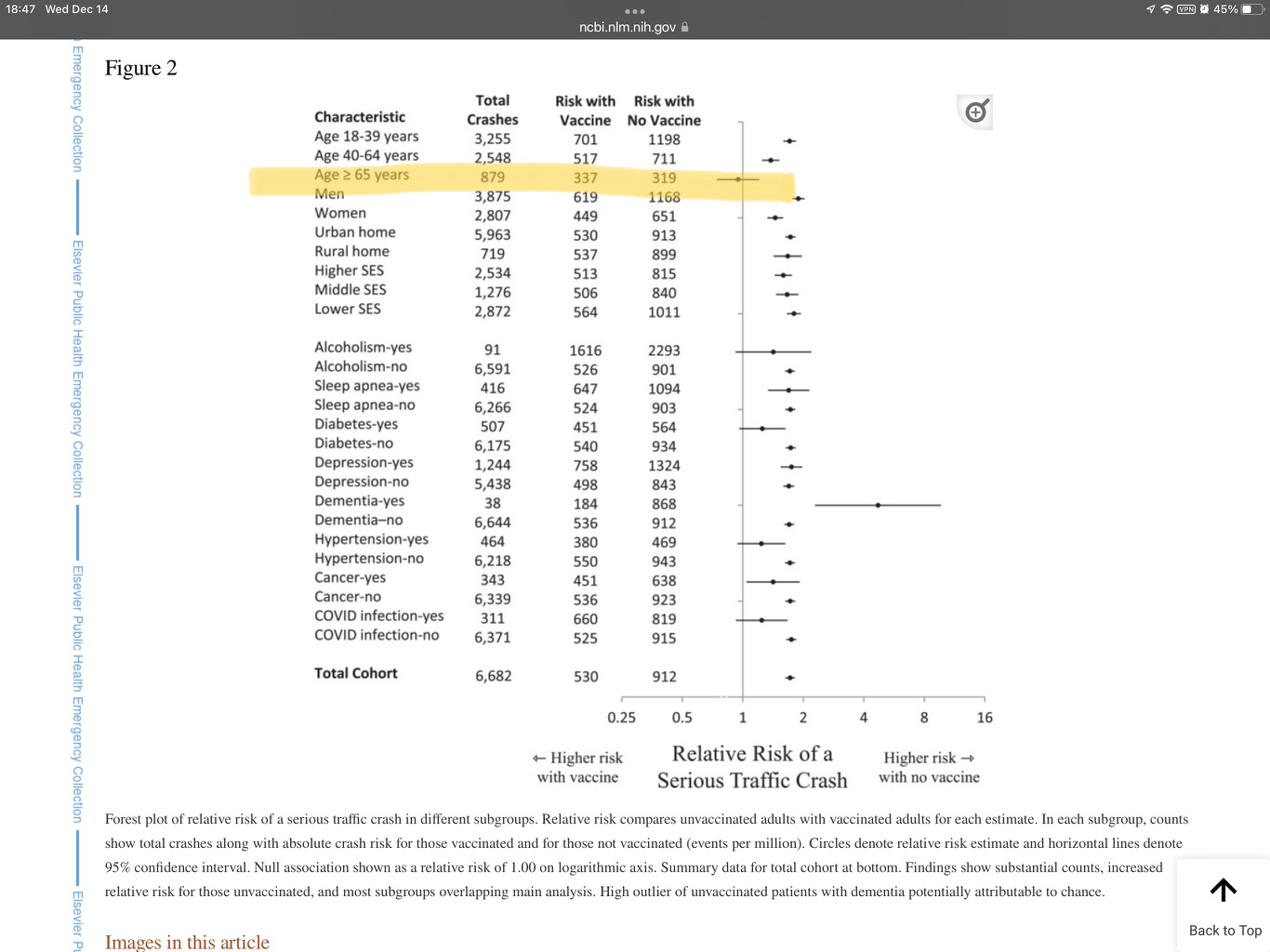 I did find an abstract of the study and one thing does stand out. For those of us over 65 there was a slightly lower risk of a traffic accident for