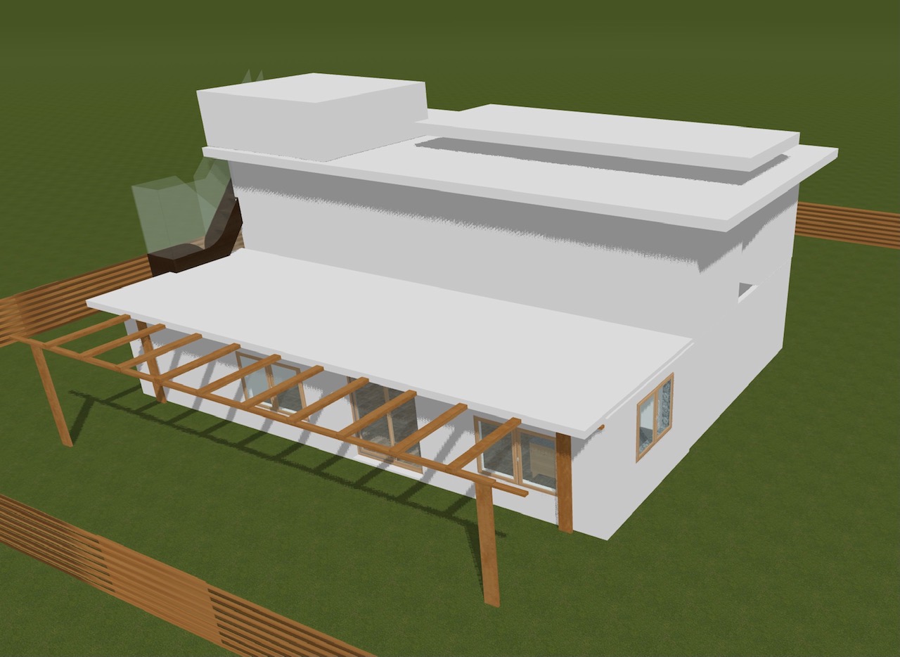 The concrete single story with a roof deck goes where we are rigging the solar panels.