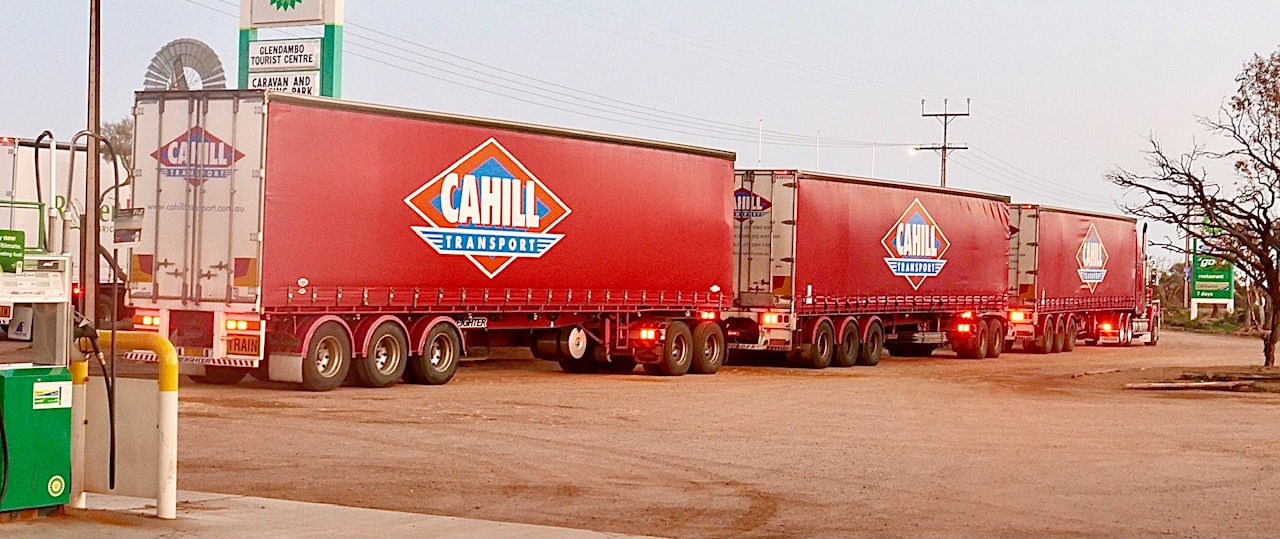 These are not US sized trailers! That rig is over 150’ Long (176’)!! The tractors have Roo catchers made out of RR track! We drove 1200KM each way