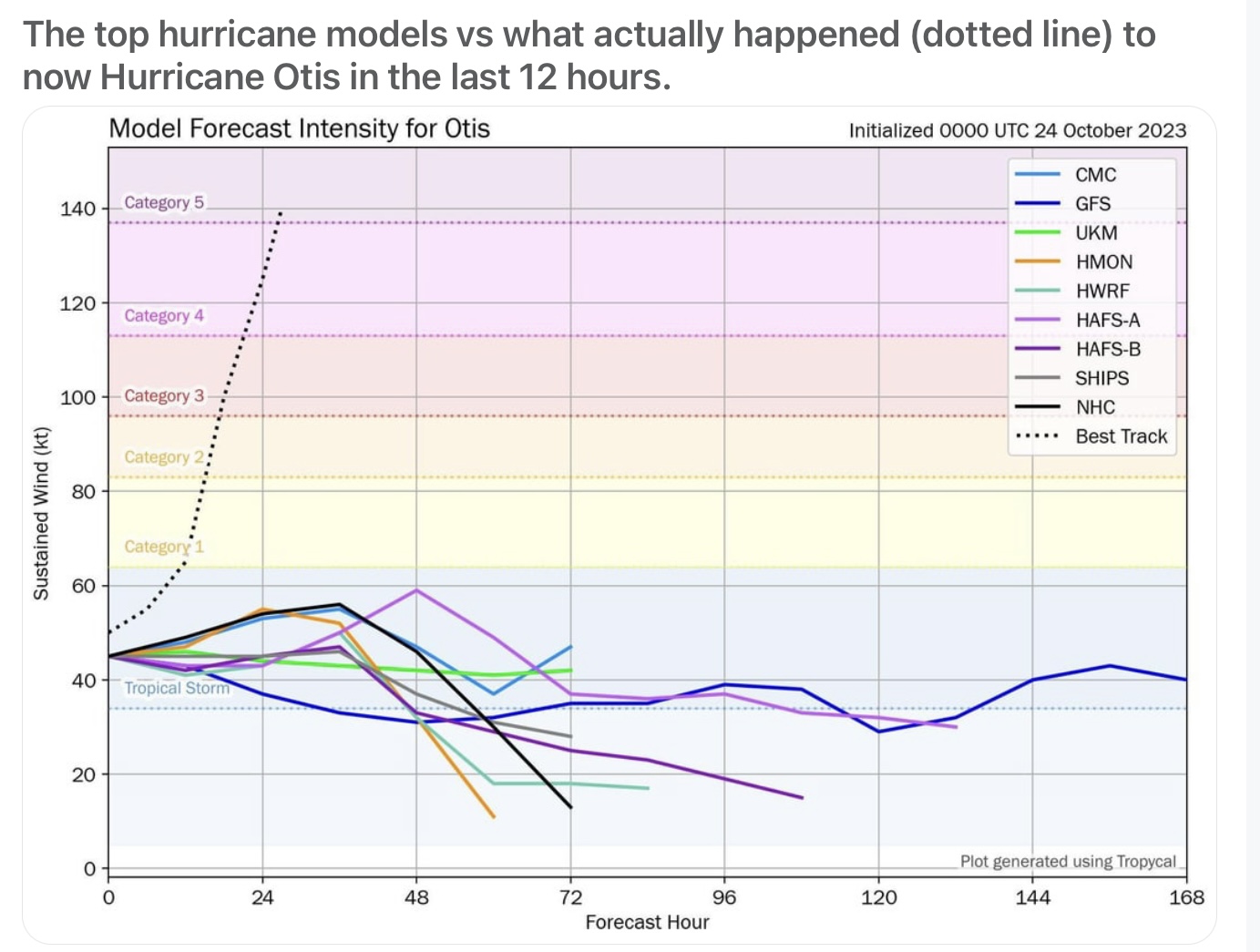 Hurricane Otis went from being a category 1 tropical storm to being a Category 5 monster hurricane in a matter of hours. Know why, Einstein? Because