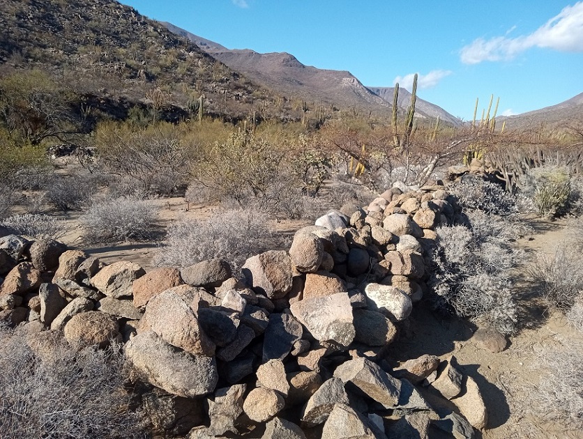 Crosby also mentions a corral, he says “The principal structure was a massive corral laid up of large pieces of the native rock.” (The King's Highway In Baja California, page 140). The corral has stood the test of time and is still standing, with walls a full 6 feet tall and in perfect shape.