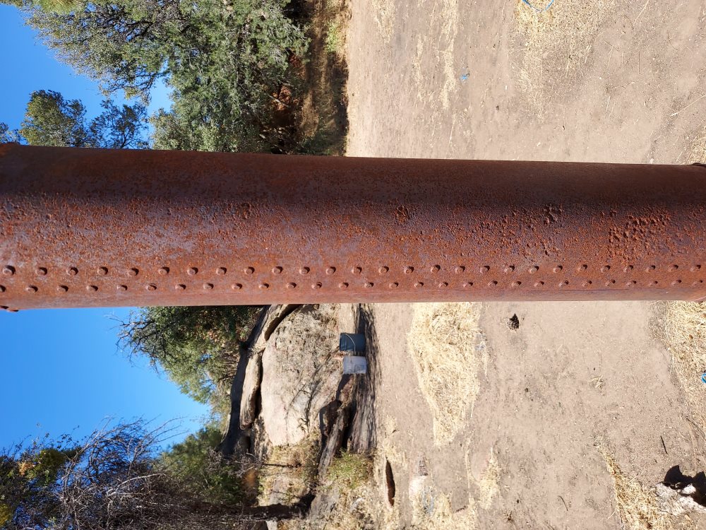 brought water to La Milla from El Topo (circa 1930s?). The pipe is of riveted construction, with a nice red-brown rust patina displaying its age.