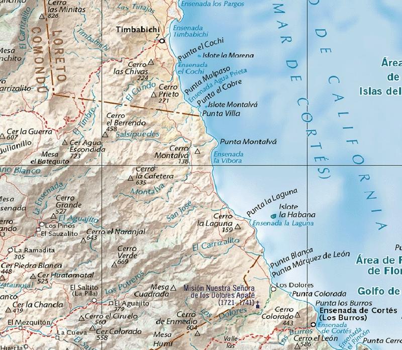The 2021-2023 Benchmark Baja California Road & Recreation Atlas shows a road (as a thin line)...