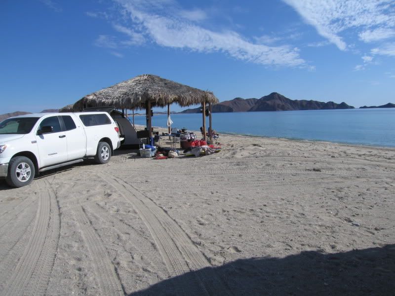 we stayed in the "cabins" on Friday night after being blown away at Rancho Beluga ($15 per palapa, NOT per truck) on Thurs night (40+ mph and sand