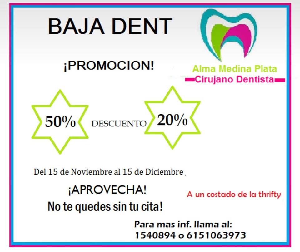 *50% de descuento en resinas, amalgamas, limpiezas y extracciones (pagando de contado)