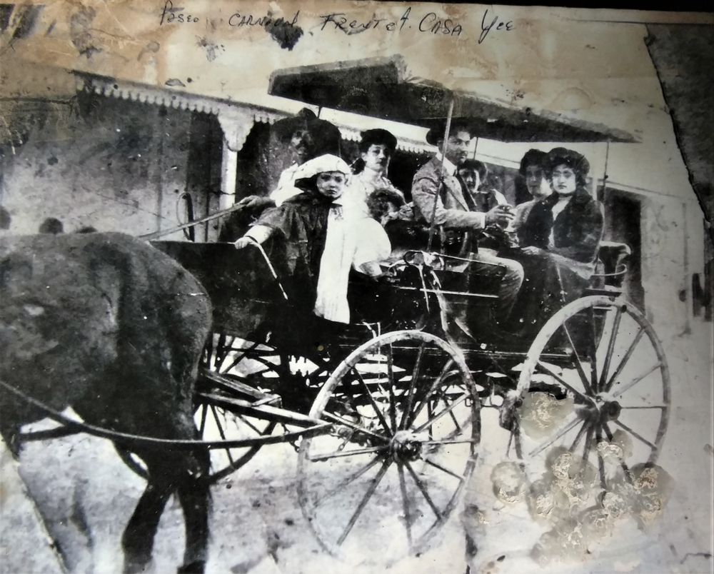 Photo reads: "Carnival ride. In front of Casa Yee."