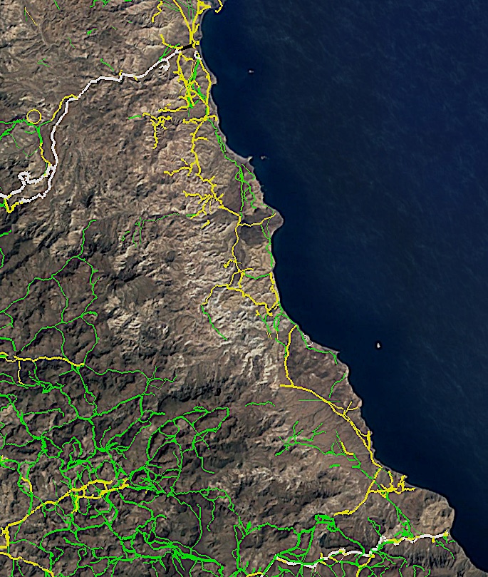 There might be some lines on a map somewhere... but I doubt anybody has been driving from Timbabichi to Los Dolores.... And... if they have... it