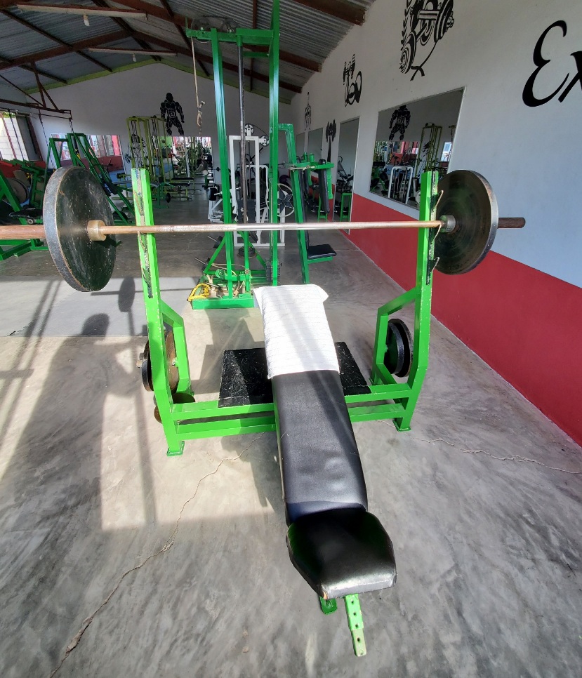 On February 2, 1988 Sabino opened the first gym in his hometown when he was 39 years old,raising a family and working full time. It was located in downtown Ciudad Constitucion and consisted of a few homemade exercise machines and barbells fashioned from iron rods with weight plates cast from molten lead. He told me he used a carnita pot, fire, molds, placing the lead in spoons to pour into the molds.. Sabino built everything himself using materials which were available at the time.