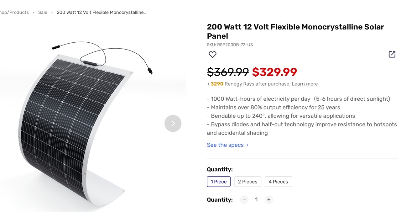 The flexable panels can be designed into a sun shade and installed on the roof if you do a rased roof van. If you go with a diesel consider a diesel